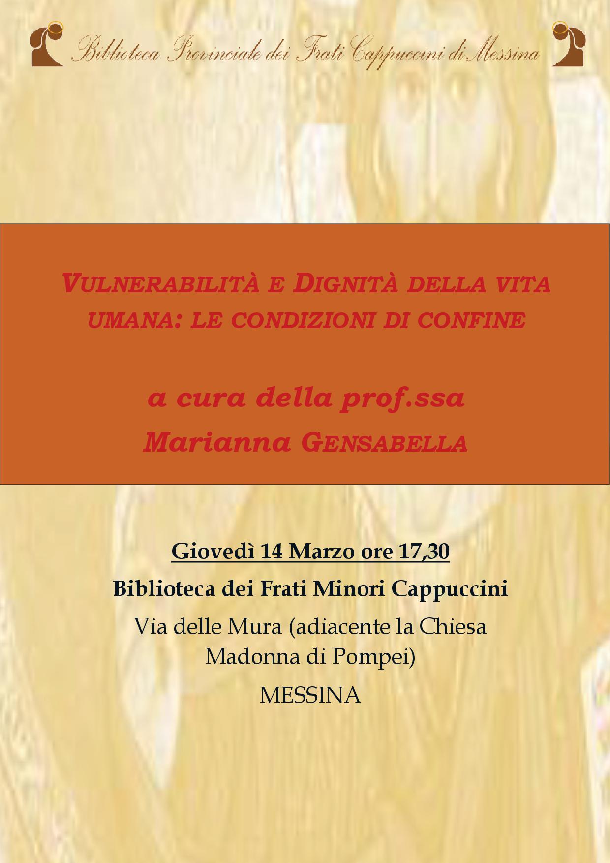 Giovedì 14 Marzo p.v. alle ore 17:30 presso la Biblioteca dei Cappuccini rifletteremo,